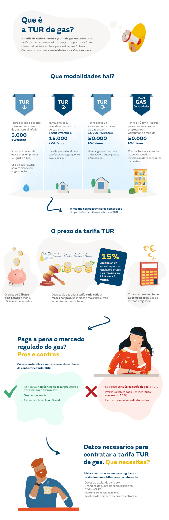 - A tarifa TUR débese contratar cunha comercializadora de gas regulada.